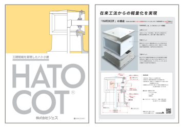 『HATOCOT』の構成/特長/在来工法との工程比較例/最近の建築用途別採用実績比/配管取り出し〈P型〉/多数配管・ダクトの取り出し〈V型〉/大開口部の配管・ダクトの取り出し〈VW型〉/片連結タイプ・両連結タイプ/施工フロー〈配管取り出し用〉/など